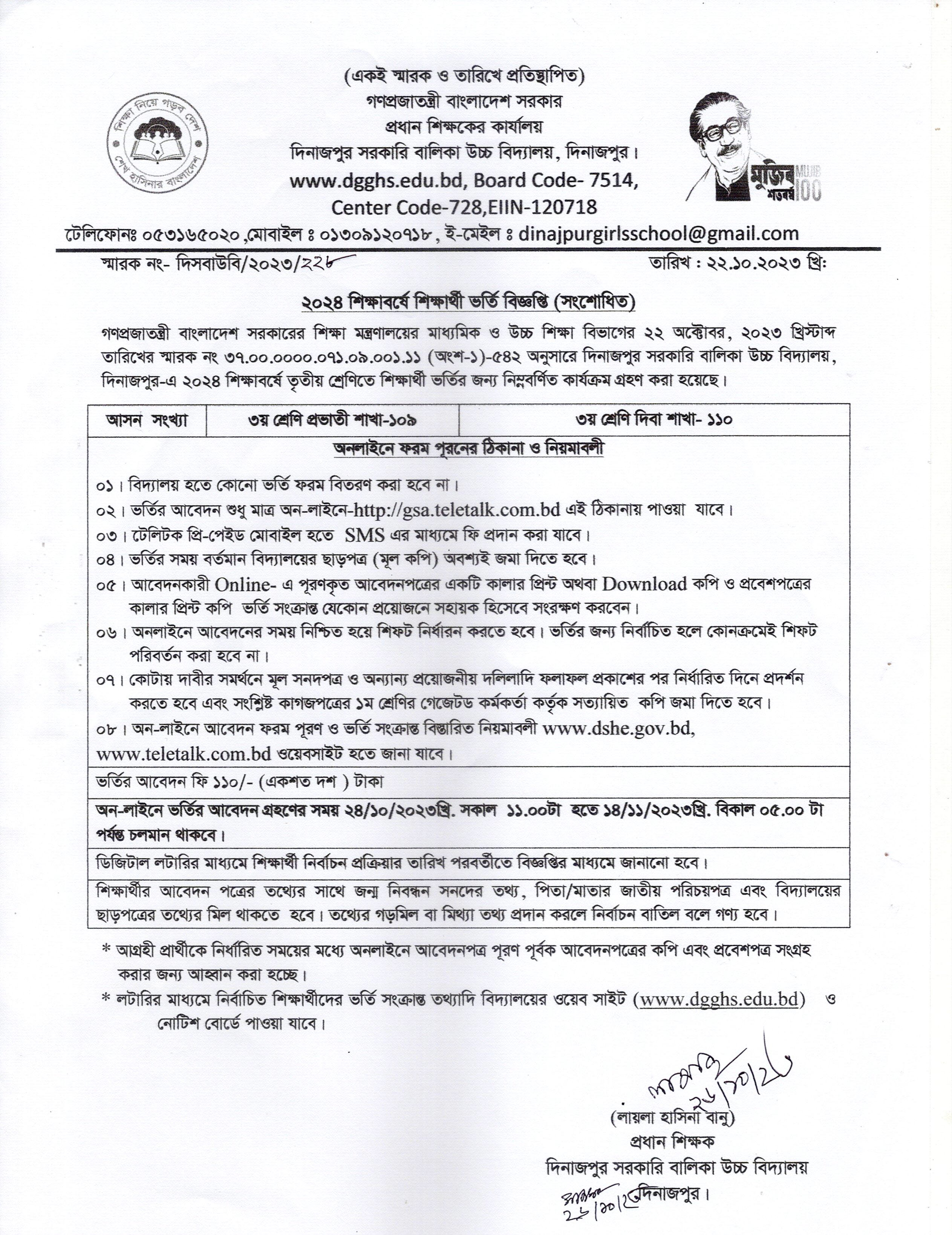 ভর্তি বিজ্ঞপ্তি ২০২৪