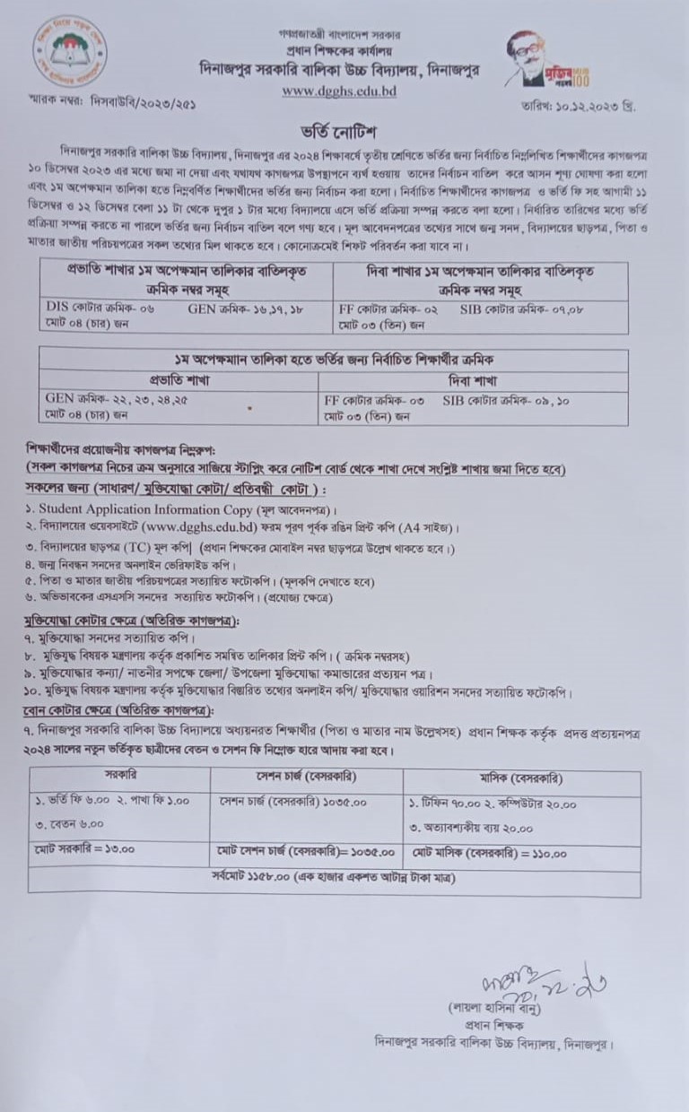 ভর্তি নোটিশ- ২০২৪
