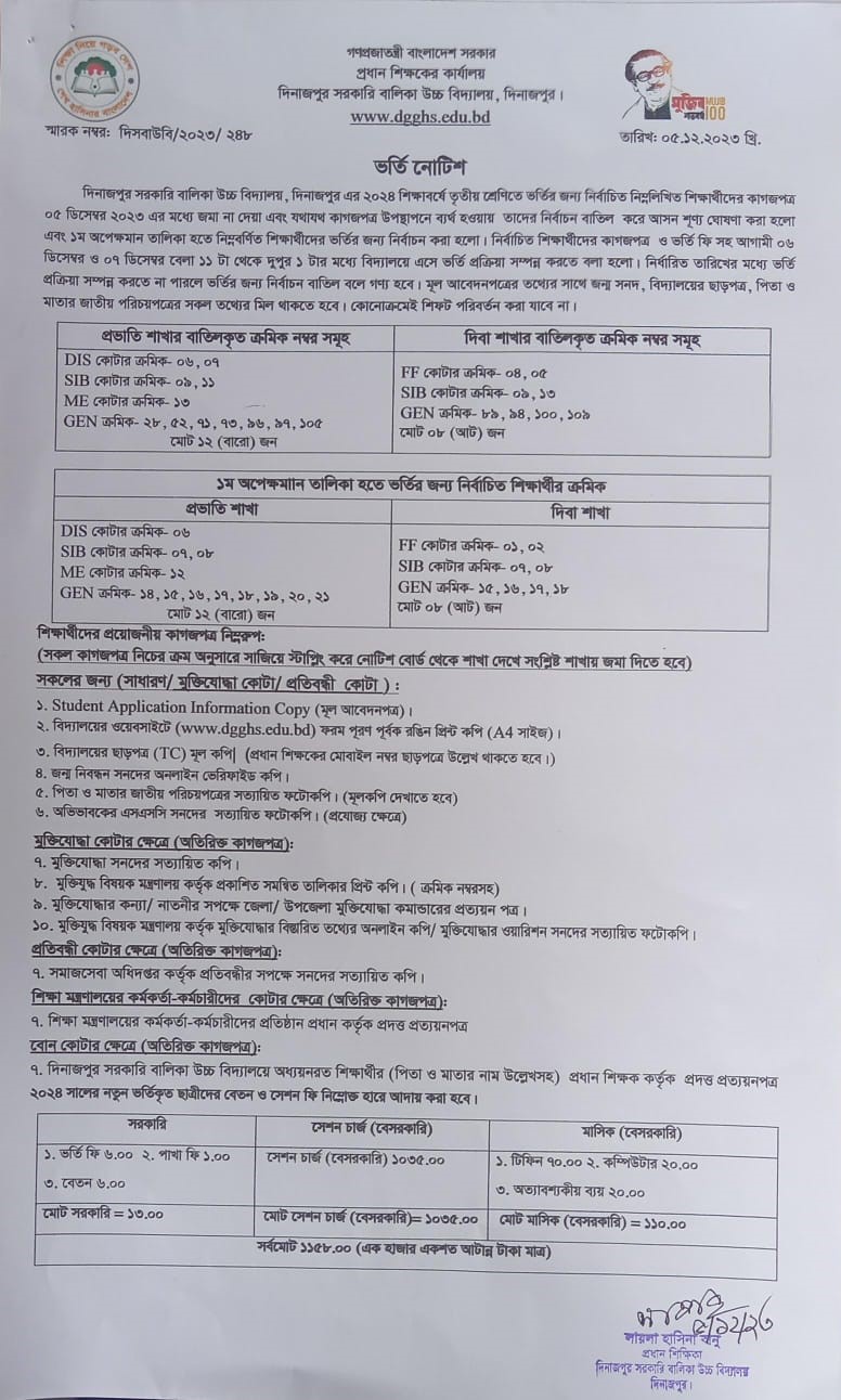 ভর্তি নোটিশ-২০২৪
